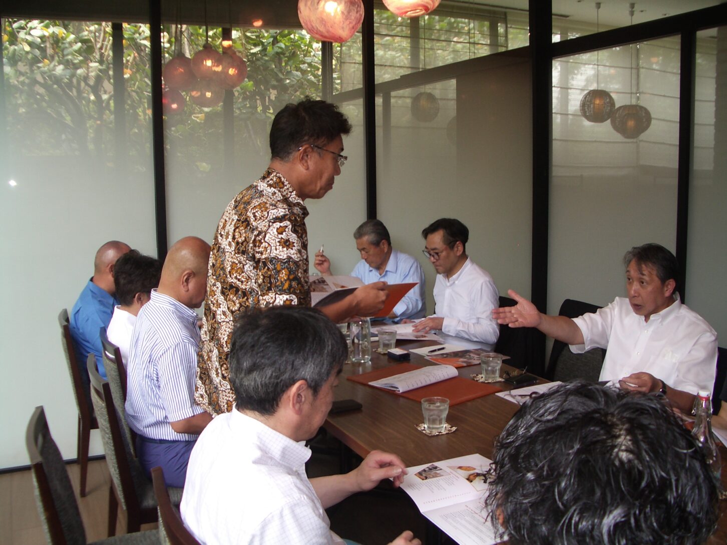6日は3社の現地工場を視察。1社目の冨士精工の合弁工場「P・Tフジプレシシツールインドネシア」では、同社の広瀬一正社長とランチミーティングを実施。廣瀬社長からは、インドネシア経済の概要や、同社の生産状況、雇用環境など、詳しく話を聞くことが出来ました。